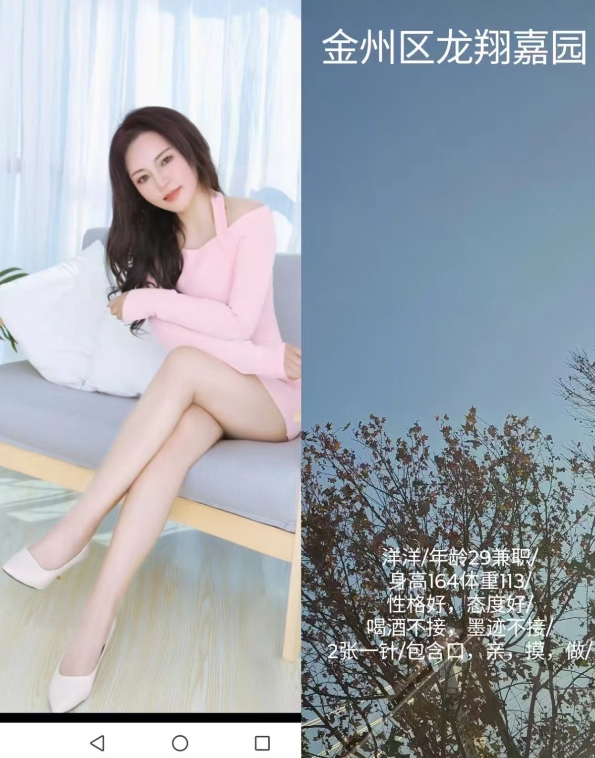 金州气质少妇一枚,说话细声细语的,四肢纤细,皮肤白皙,操逼的时候,让人忍不住的怜惜,叫声一绝。估计刚下海,活一般,但是挺听话的。在附近的可以去体验一下。